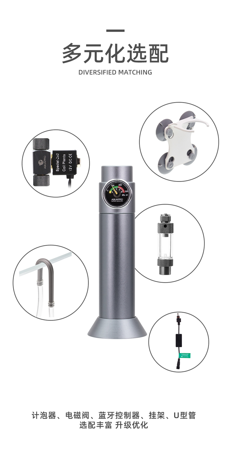 專為水草缸設計的二氧化碳鋼瓶發生器(CO₂ Cylinder Generator),可穩定釋放 CO₂,促進水草健康生長。採用高品質鋼瓶及耐壓材質,搭配精密電磁閥控制,操作簡單安全,無需頻繁更換氣瓶。小巧設計,適合 15–40 L 小型水族缸使用,保持水草長期翠綠生機。