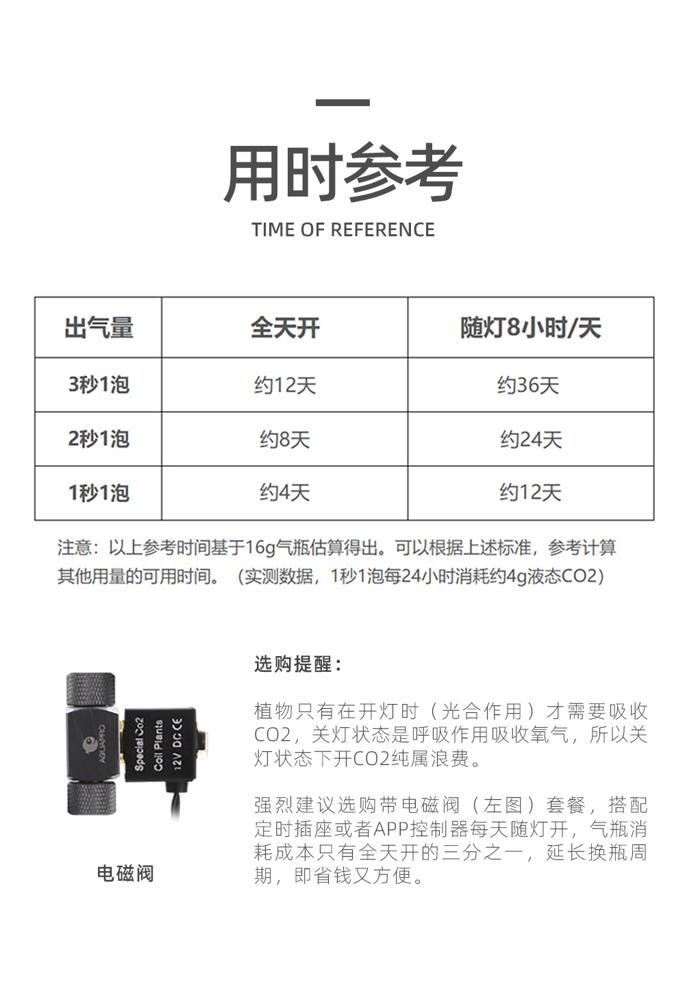 • 建議每日定時開關電磁閥,控制二氧化碳供應時間