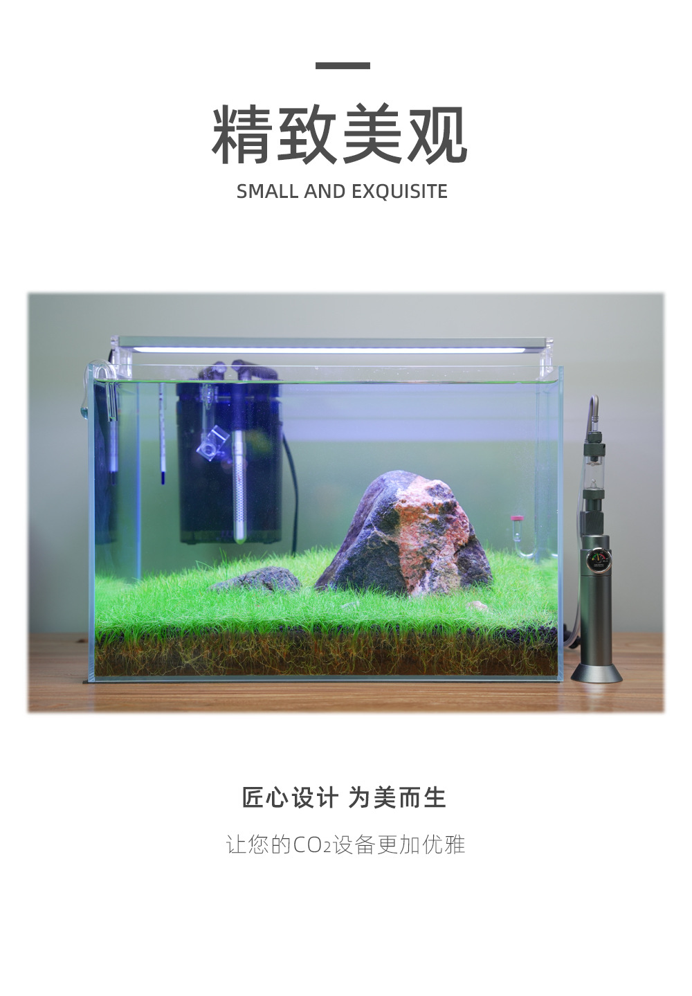 二氧化碳鋼瓶發生器,適合 15–40 L 小型水草缸,搭配電磁閥與細化器,穩定輸出 CO₂,提升水草生長,操作簡單安全,是家庭桌面缸和初學者的理想選擇。