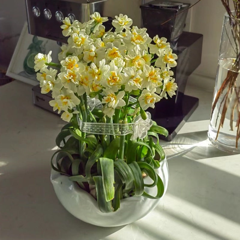 重瓣水仙看起來更典雅厚重,而單瓣則更素雅簡約,兩種均有售。