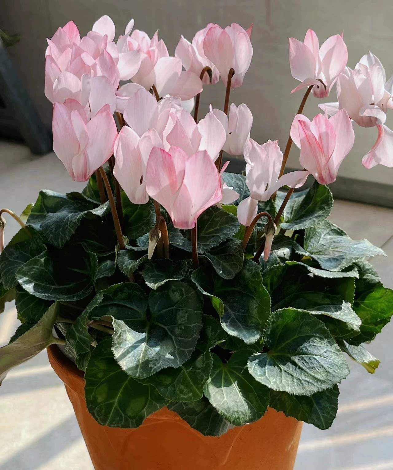 Blooming throughout late autumn, winter, and early spring, this cyclamen brings brightness to colder months when few flowers thrive. Its long-lasting blooms, compact form, and elegant color palette make it ideal for home décor, office desks, shop displays, and festive arrangements. Whether placed on a windowsill, coffee table, or entryway, it instantly elevates the atmosphere with calm and refined beauty.