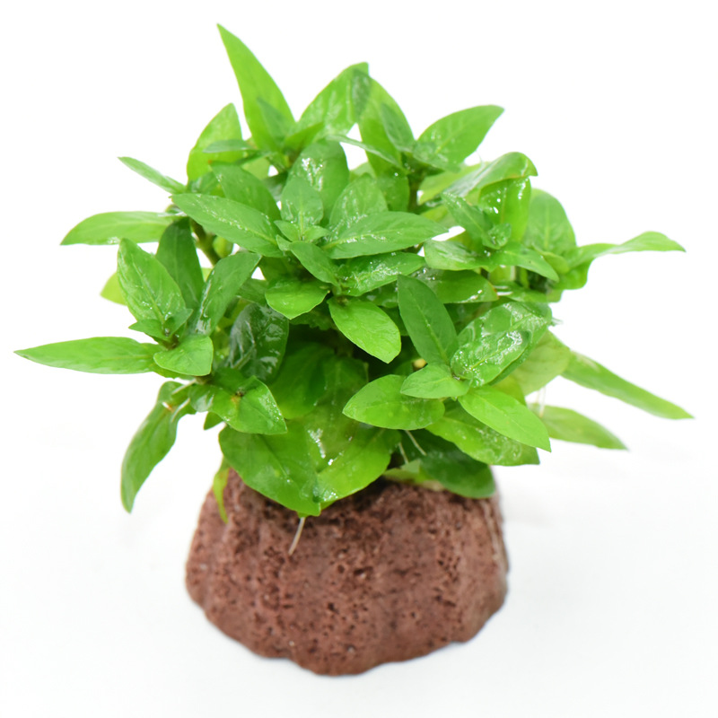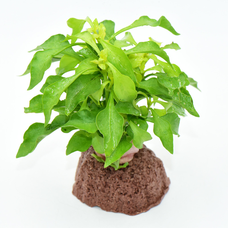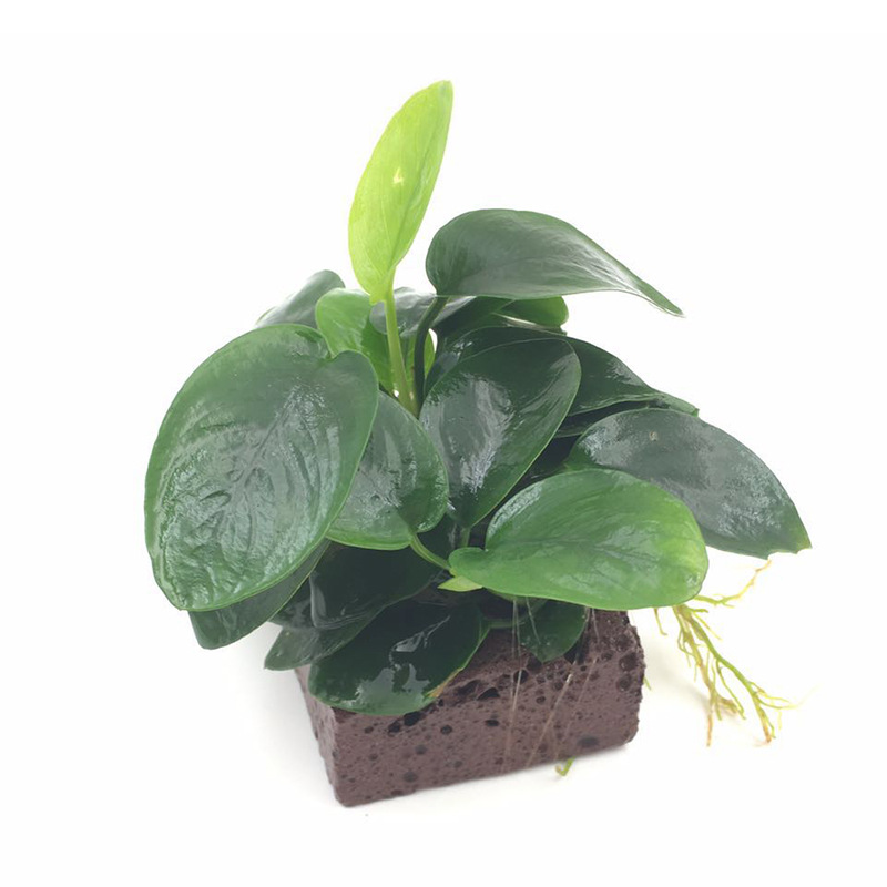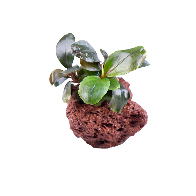 Anubias sp. on Lava Rock is a design method that fixes the water banyan plant on a natural volcanic stone, which is both practical and beautiful. Ficus water is a very shade-tolerant and water-resistant aquatic plant species, with thick green and thick leaves, not easy to rot, and is widely used in aquarium landscaping. Combined with volcanic stones with rough texture and rich pores, it is more conducive to stabilizing plants and cultivating nitrifying bacteria, and improving water quality stability.