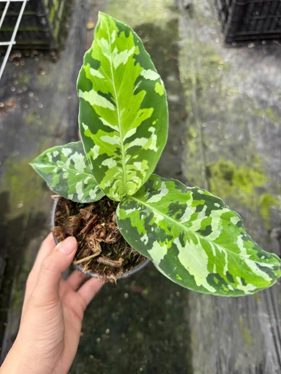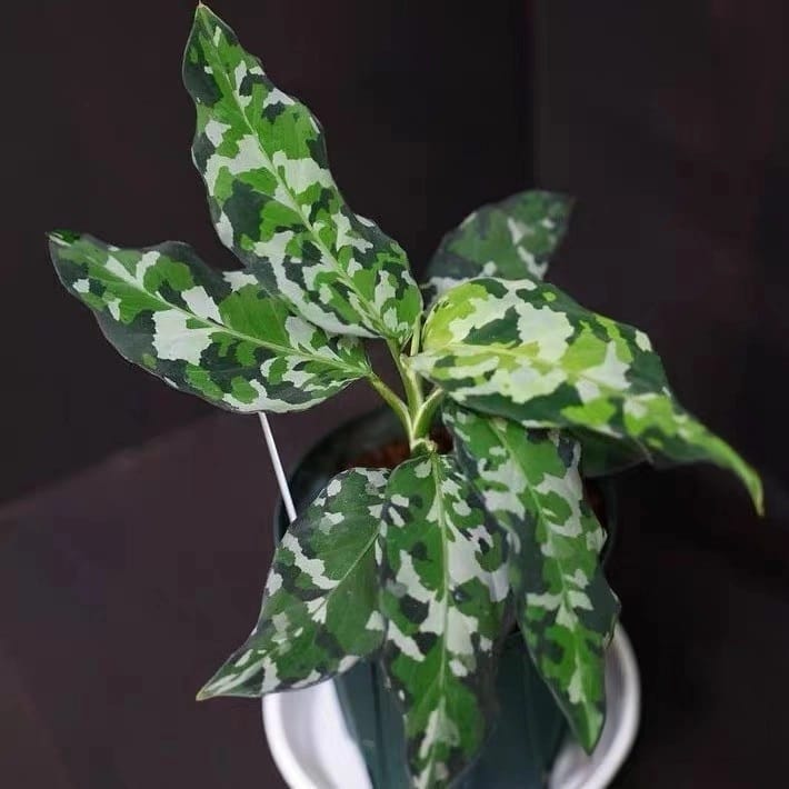 安達曼迷彩三色粗肋草(Aglaonema pictum tricolor)是一款極具代表性的高端觀葉植物,原生於印尼與安達曼群島一帶的熱帶雨林。其葉片以深綠、淺綠及銀灰色交錯形成天然「迷彩」斑紋,每一片葉子的圖案皆獨一無二,層次分明、質感細膩,被譽為粗肋草中的收藏級品種,深受資深玩家與觀葉愛好者追捧。