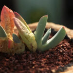 五十鈴玉 Baby toes (Fenestraria aurantiaca),以小腳趾形葉片聞名,易於護理,適合明亮散射光,澆水需避免積水,適合多肉植物愛好者。