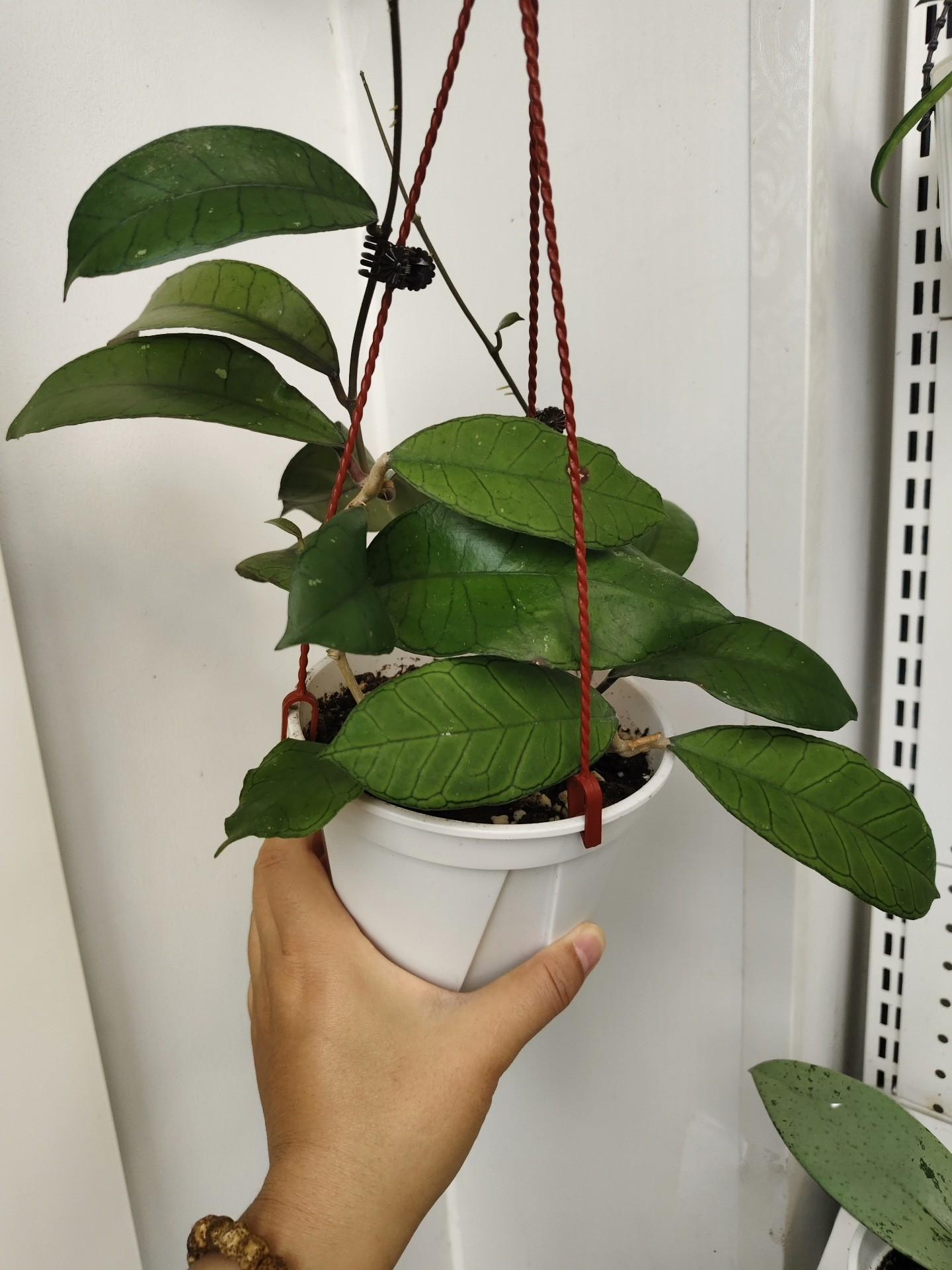 Hoya gunung gading is a rare, naturally occurring hoya species valued for its thick, glossy green leaves and graceful trailing habit. Its foliage displays a clean, refined appearance that highlights the plant’s wild origin.